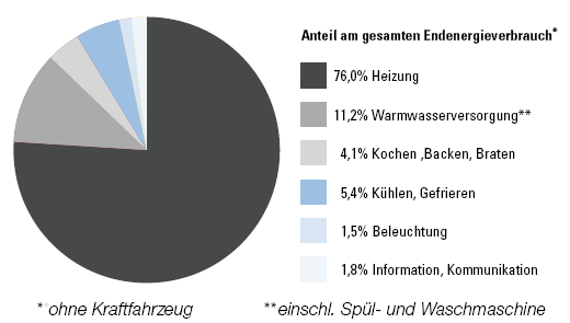 (knü) Ein durchschnittlicher Zweipersonenhaushalt verbraucht am meisten Energiefür die Heizung, nämlich rund 17'000 Kilowattstunden (kWh) pro Jahr. Für das Warmwasser werden rund 2'000 kWh und für elektrische Geräte sogar 4'500 kWh benötigt. Insgesamt entfallen mehr als ein Viertel des Energieverbrauchs in einem Durchschnittshaushalt auf den Stromkonsum.